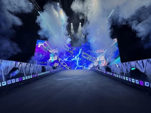 In this high-end, multimedia experience visitors create and perform their own iconic WWE Superstar walk-on moment. It’s a powerhouse of a production designed specifically for Riyadh that runs smoothly, on its own, and with a high throughput–1 guest every 15 seconds–from half a world away.